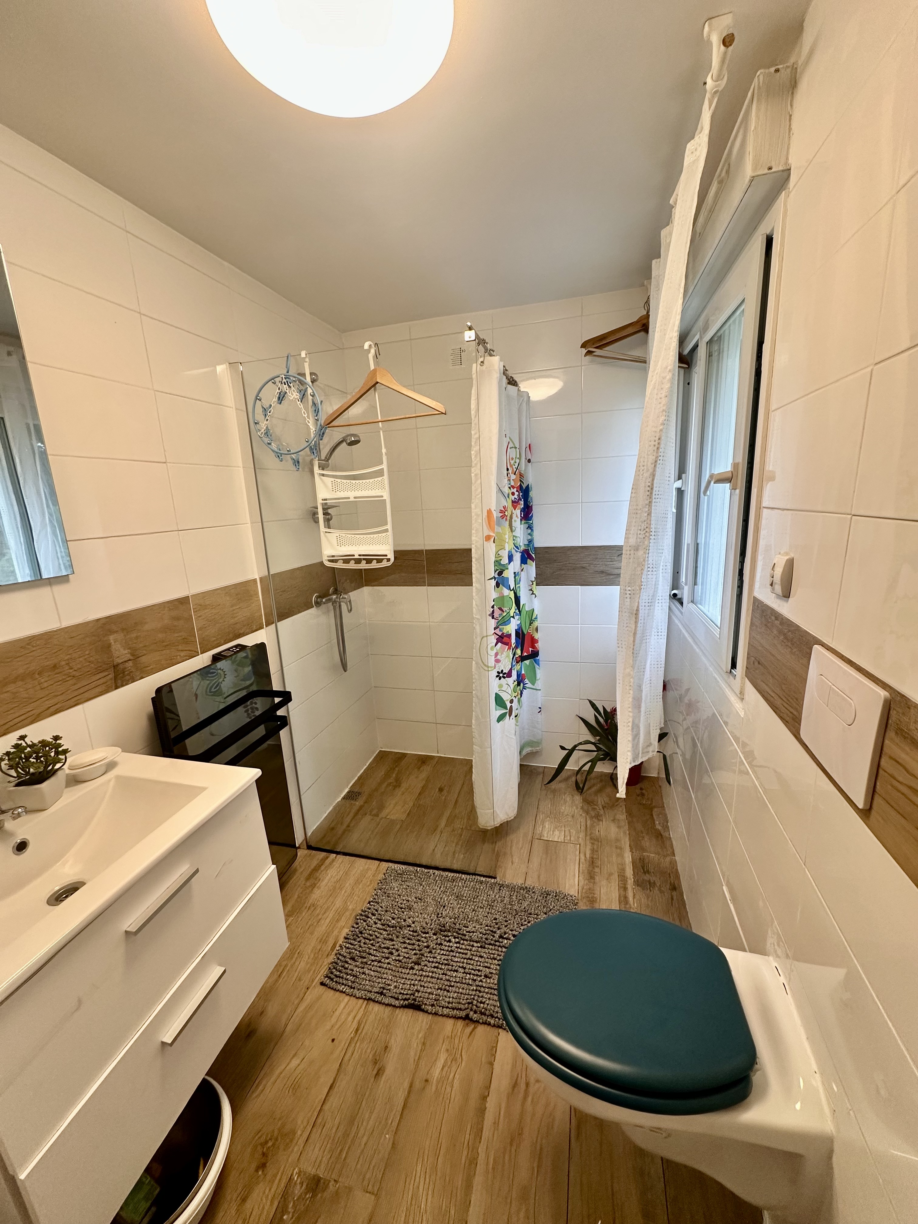 Espace spacieux situé en rez-de-chaussée avec tout le confort nécessaire et cuisine équipée.